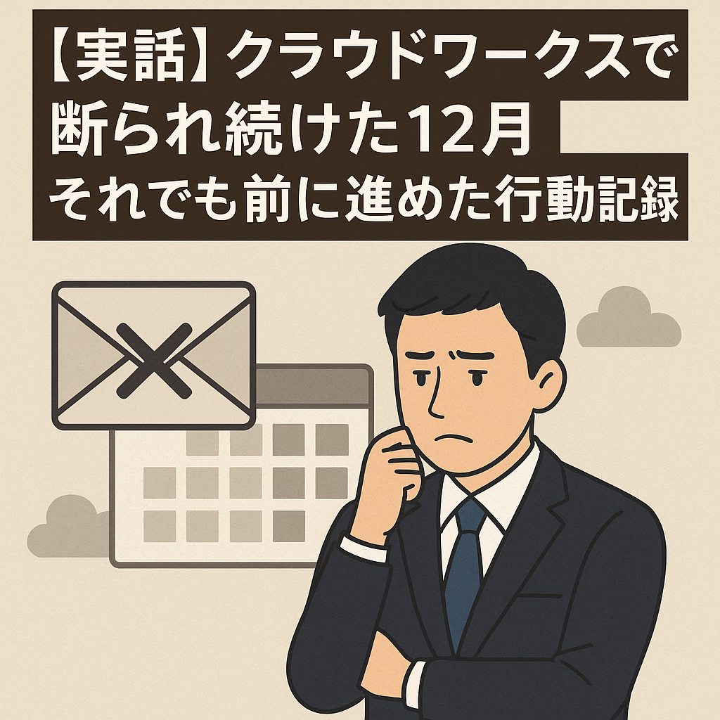 クラウドワークスを始めてから、12月はとくに「応募しても返事が来ない」「不採用が続く」という壁にぶつかりました。副業として収入を作りたい気持ちは強いのに、なかなか結果が見えず不安になる時期でもありました。